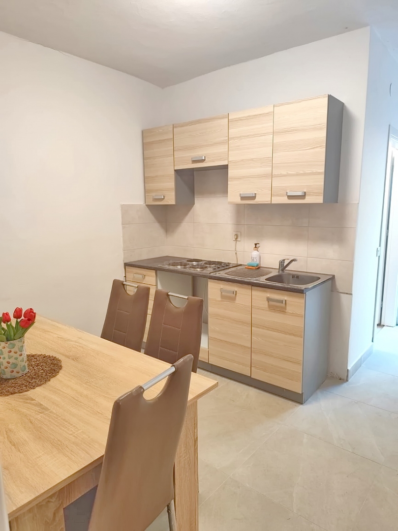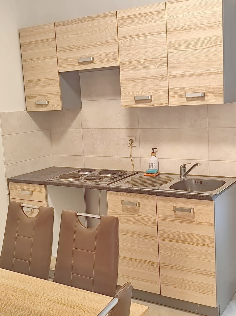 The apartment is positioned on the ground floor of a well-maintained building. It has a total area of 27 m² and consists of a living room connected to the kitchen and dining area, a bathroom, and a spacious 16 m² terrace that adds extra comfort. The interior is equipped with quality furniture and modern technical features. A particular advantage of this property is the beautifully arranged and well-kept garden of 98 m², which provides additional value and a pleasant outdoor space.