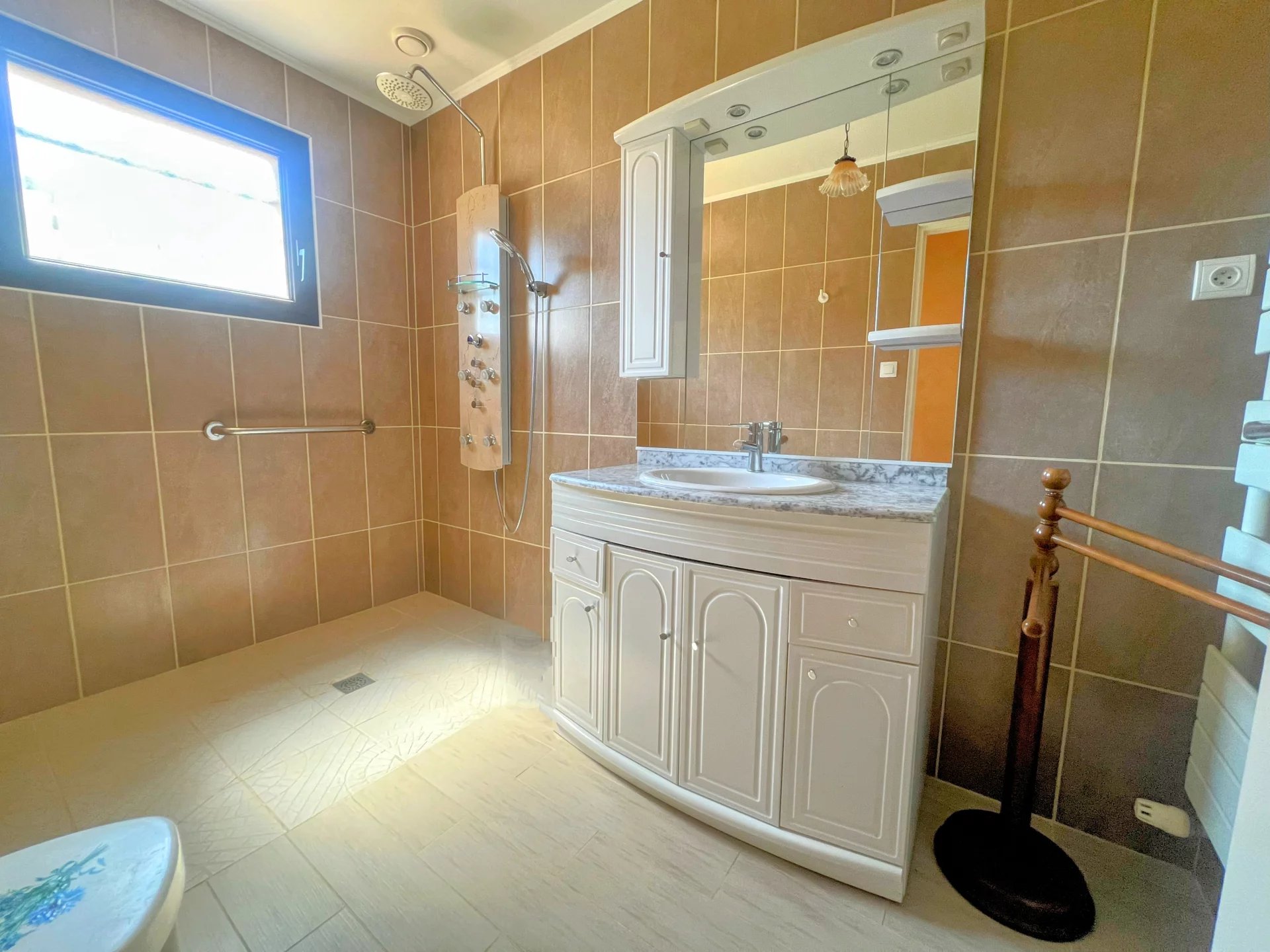 The main villa features four spacious bedrooms including a master bedroom with dressing area and en suite bathroom and open-plan living spaces, perfectly laid out for modern family life. Warmed by efficient gas central heating and reversible air conditioning, and a log fire for cozy evenings the home ensures year-round comfort.