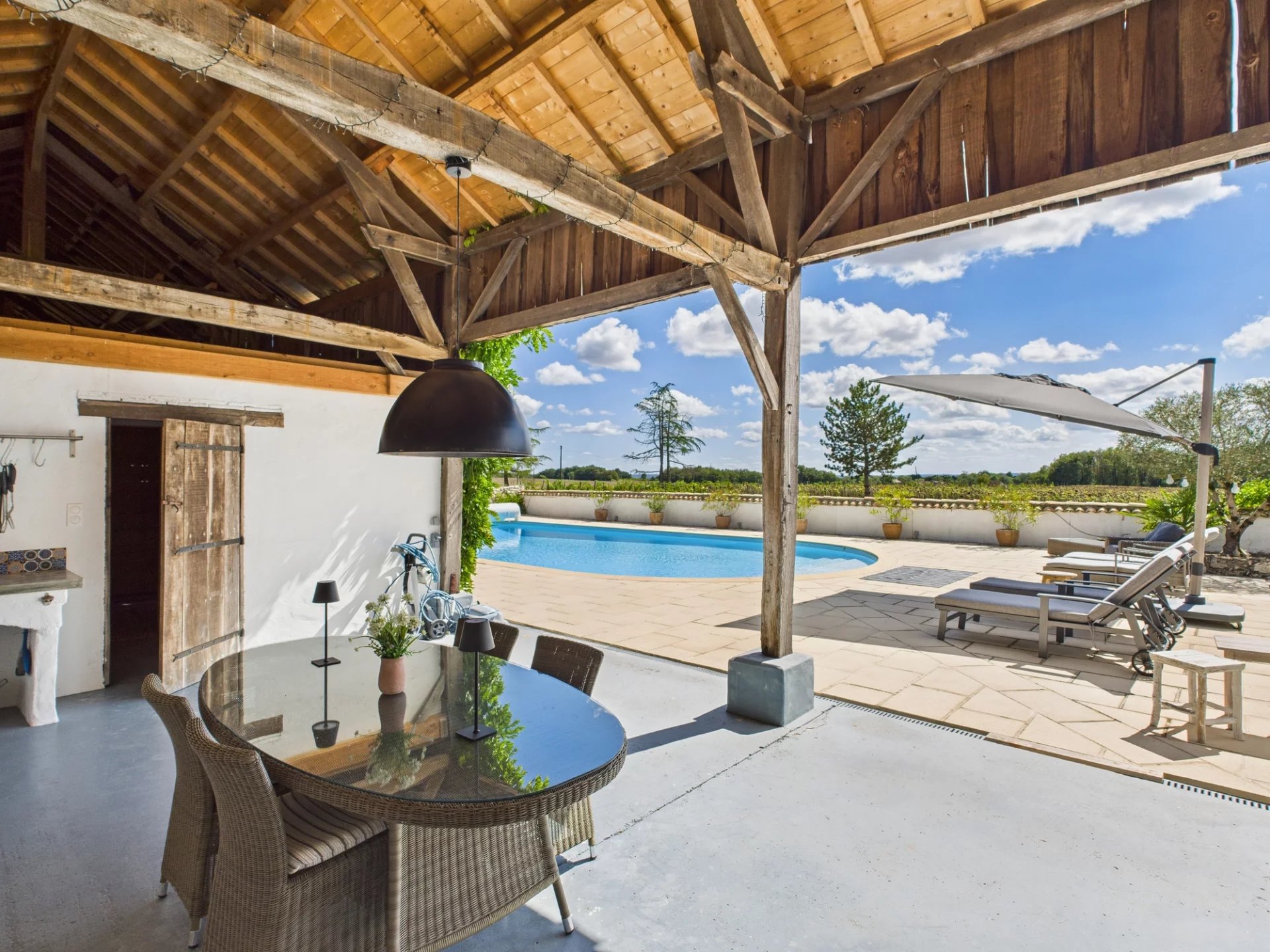 Beyond the main house, the property also includes a beautifully equipped studio apartment and a fabulous covered outdoor dining area overlooking the pool. The stunning swimming pool is fully fenced for safety and fitted with an electric cover, making it both practical and luxurious. A fully fitted summer kitchen makes al fresco entertaining simple and enjoyable, while the large attached barn offers excellent potential. There is also plenty of workshop space, additional covered areas for games, and ample parking.