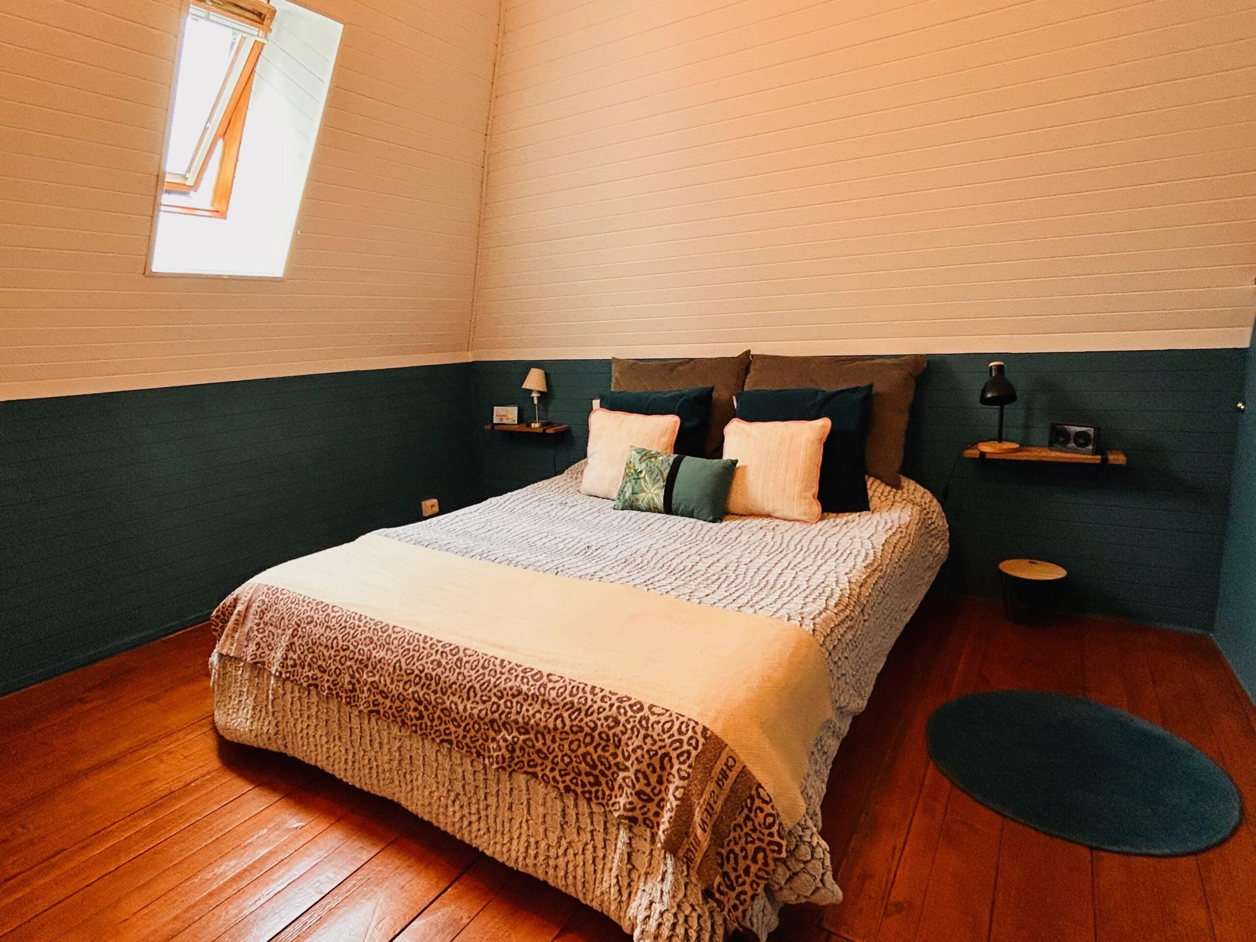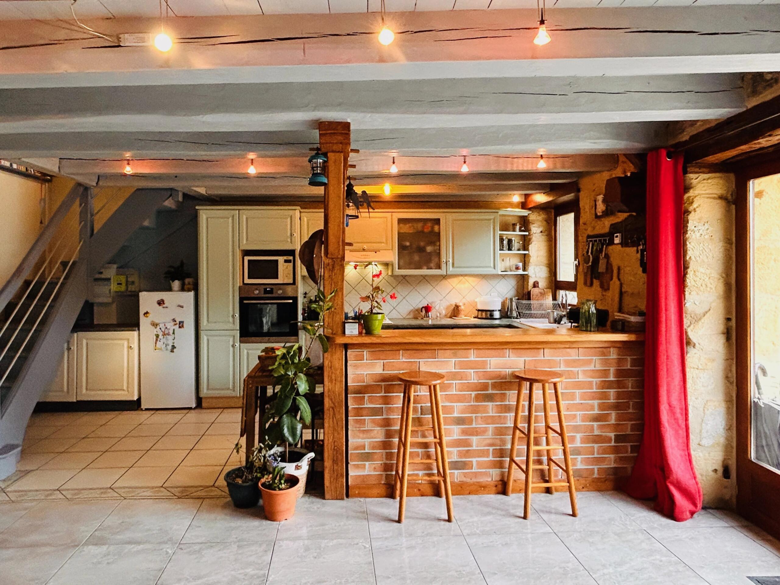 The ground floor offers an inviting open-plan living space with exposed stone and beams, and an inset woodburner for cosy evenings. Reversible heating provides comfort in both summer and winter, and double glazing makes the house easy to enjoy all year round. Upstairs, there are two bedrooms and a shower room.