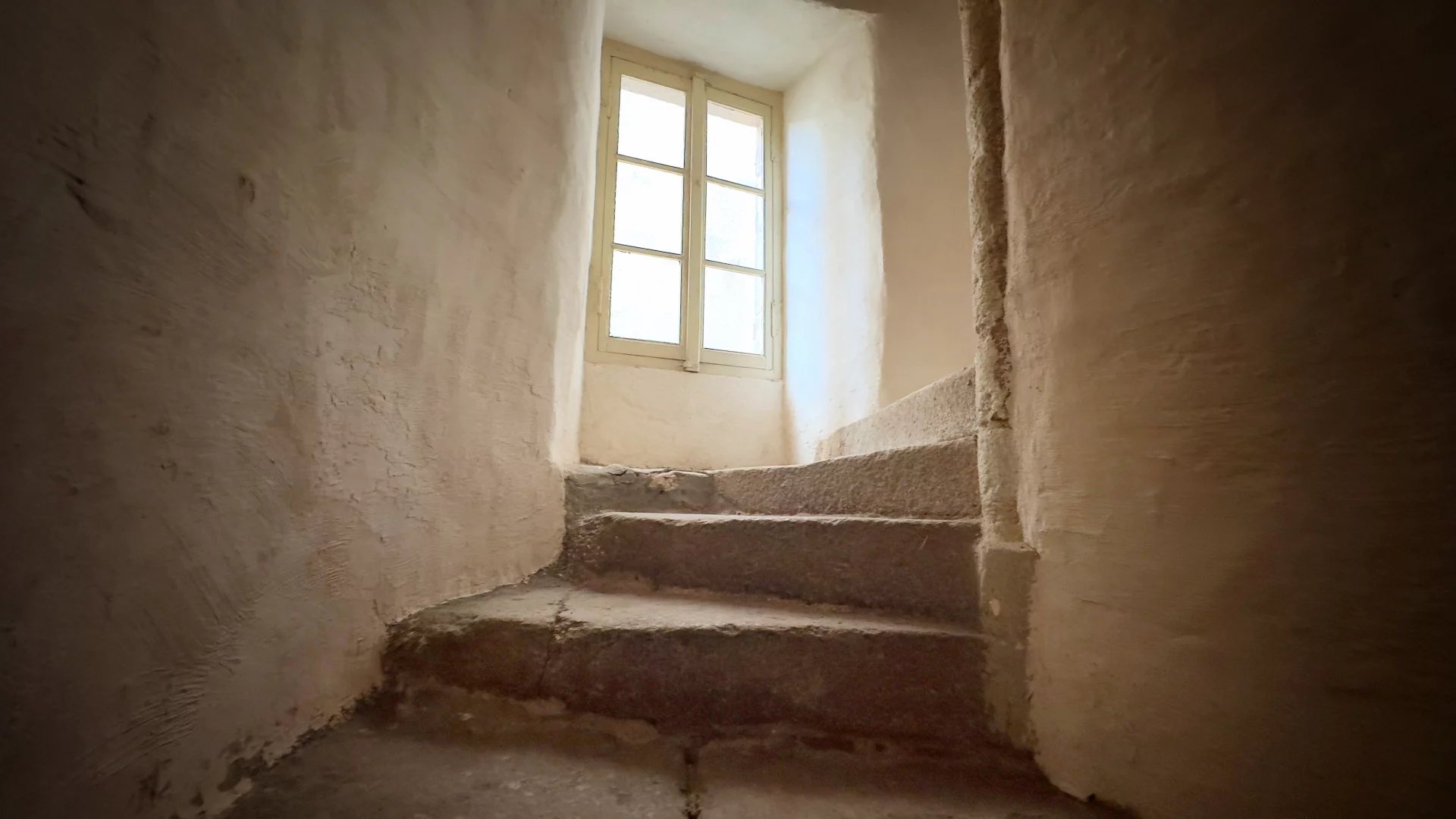 Covering a generous 156 m², the property showcases five inviting rooms (including a spacious bedroom), a stone tower housing the spiral staircase, and a large vaulted cellar.