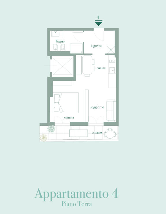 The outdoor space becomes a private corner, ideal for enjoying a morning coffee or a moment of relaxation in the open air.