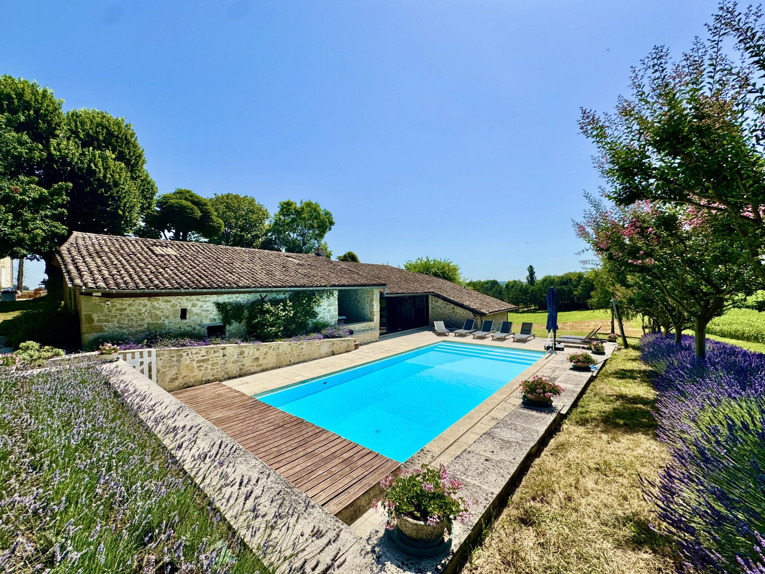 The 11m x 5m chlorine pool is equipped with an electric cover and is surrounded by tranquil grounds, offering a true retreat in the French countryside.