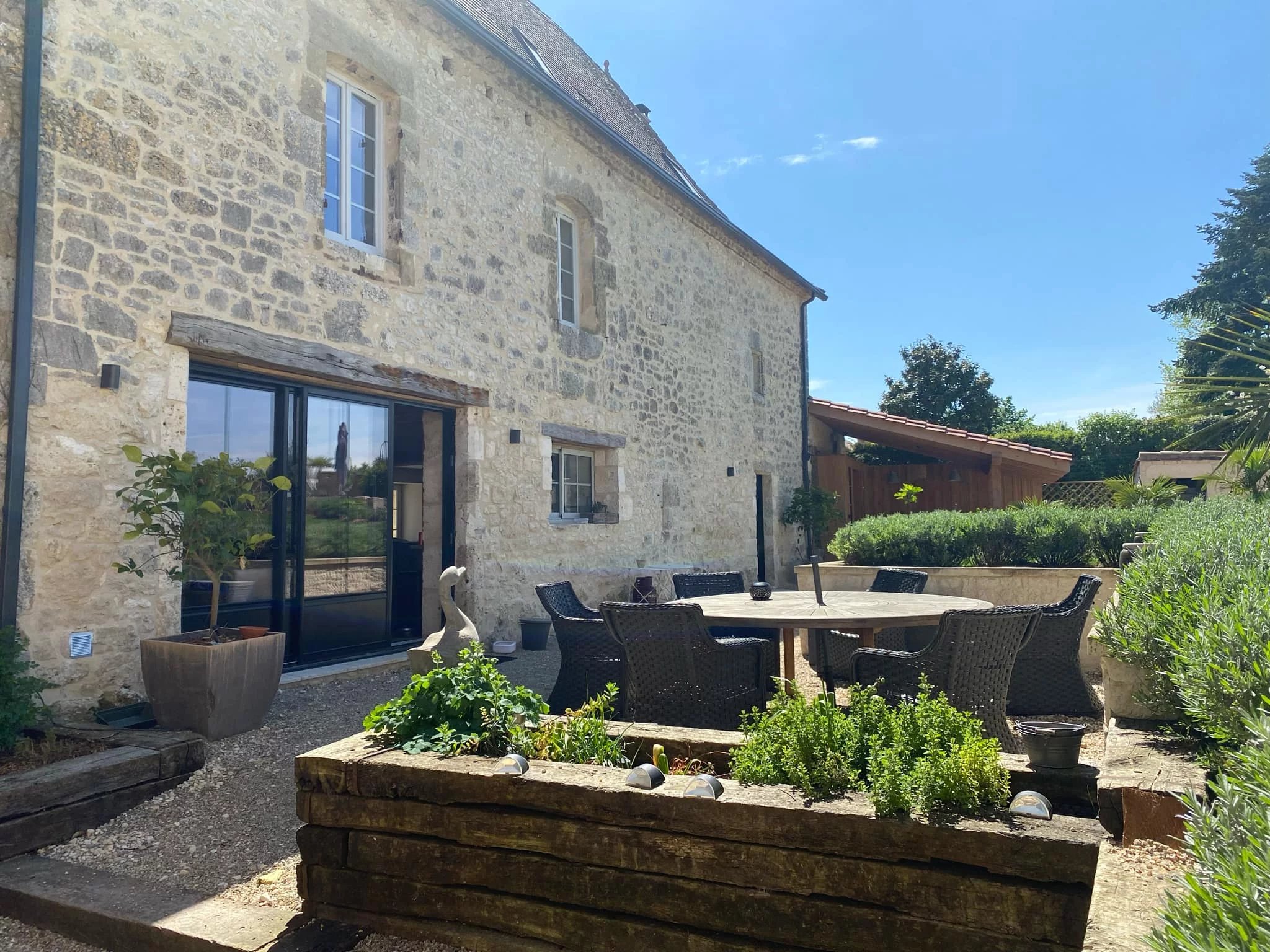 This beautifully renovated stone manor house is ideally located in the heart of a charming village and offers a superb blend of character, space, and modern comfort. The village itself benefits from a primary school, a bar, a bakery, and a small grocery shop – all within walking distance. The renowned medieval village of Issigeac, famous for its vibrant Sunday market, is just a short drive away.