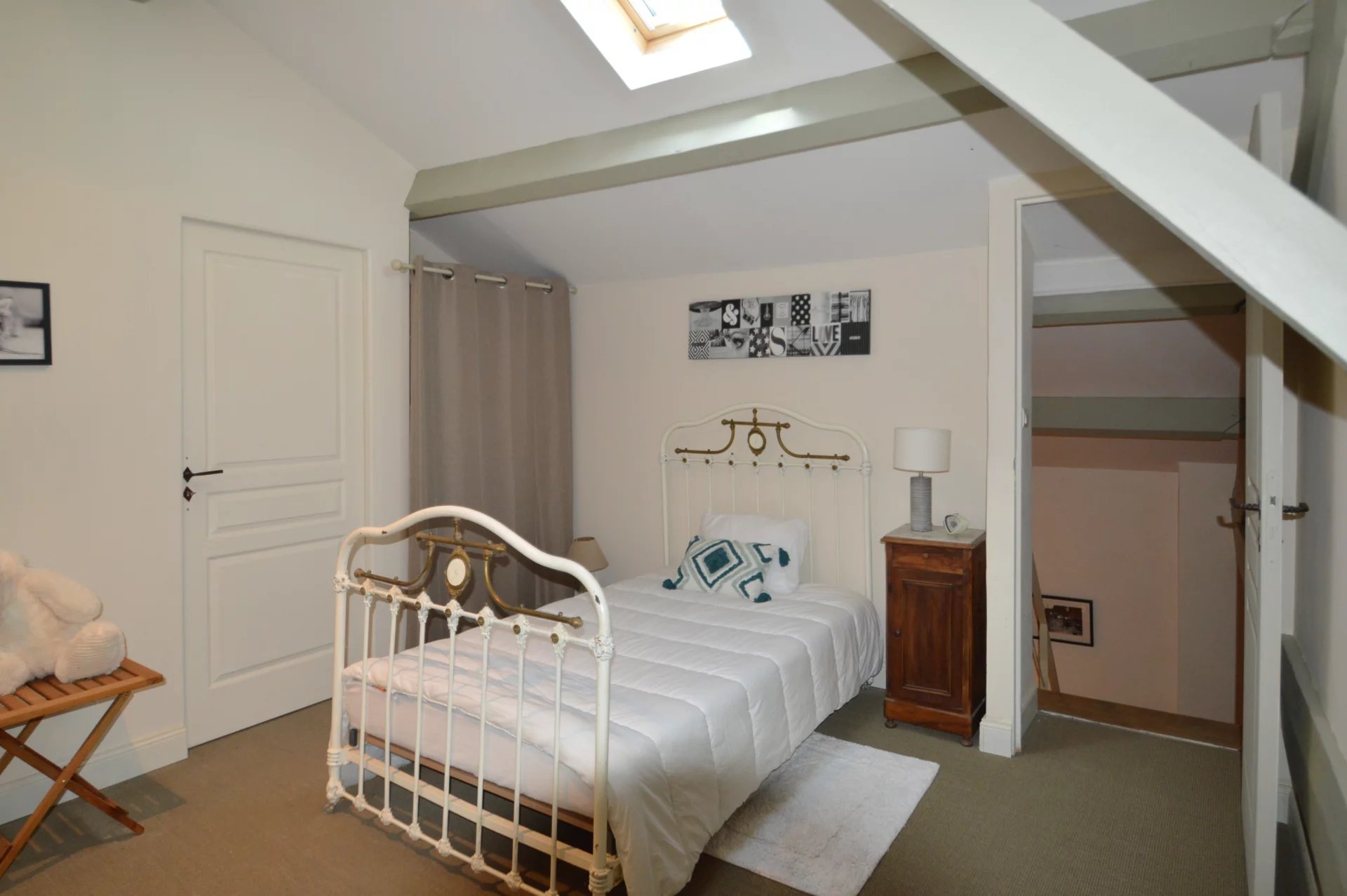 On the upper floor, the night area consists of: Two guest rooms upon entering the house, each with its own bathroom with a shower. Then, two children’s bedrooms with a shared bathroom with a shower, another bedroom with a separate bathroom, and a large playroom, offering a fun and convivial space.