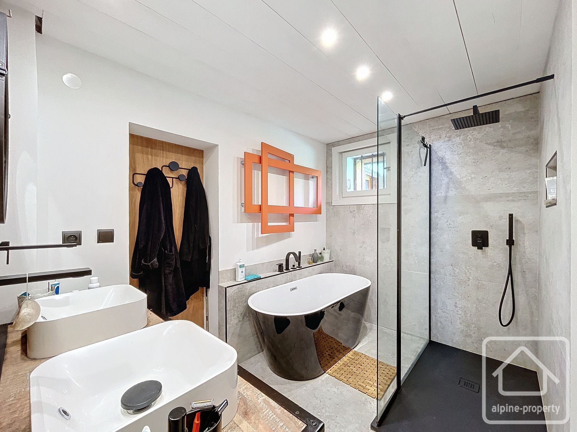 Chalet des Marmottes is a beautiful 410 m² property (of which 97 m² is under 1.8m), consisting of three spacious, independent apartments. Fully renovated with taste between 2018 and 2020, the layout and choice of high-quality materials have created spacious, cosy, and modern living spaces while preserving an authentic mountain spirit.