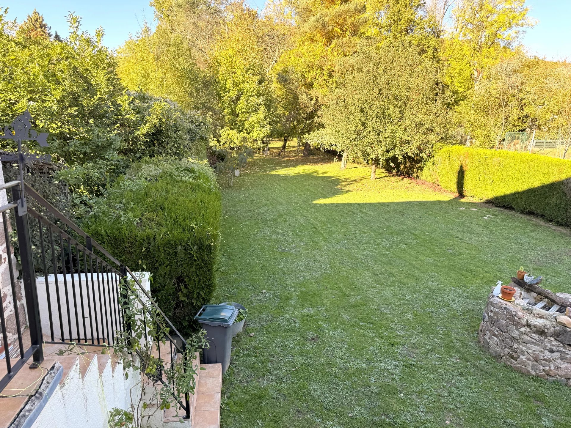 The rear garden, extending to over 1,100 m², is private, level, and well planted, the perfect setting for picnics, gardening, or quiet reflection.