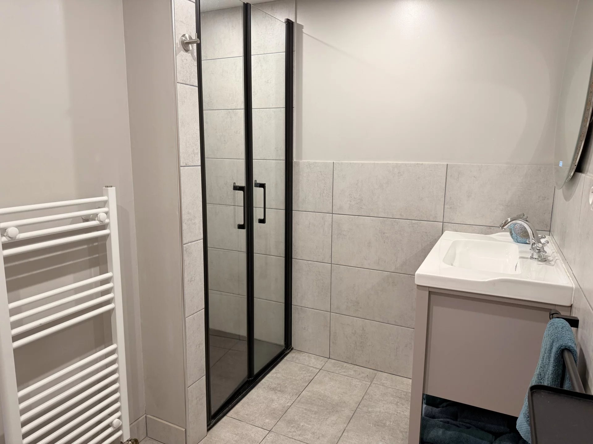 The kitchen is bright, fully fitted, and designed for practical everyday living. It opens directly to the dining area, ideal for family meals or gatherings with friends. Both rooms lead out to the sunny rear terrace and enclosed garden – a private haven with mature trees and a peaceful backdrop of the River Vienne at the far end. Also on the ground floor is a shower room with WC, a utility/laundry area, and a large through-garage with automatic doors, providing secure parking and direct access to the rear garden.