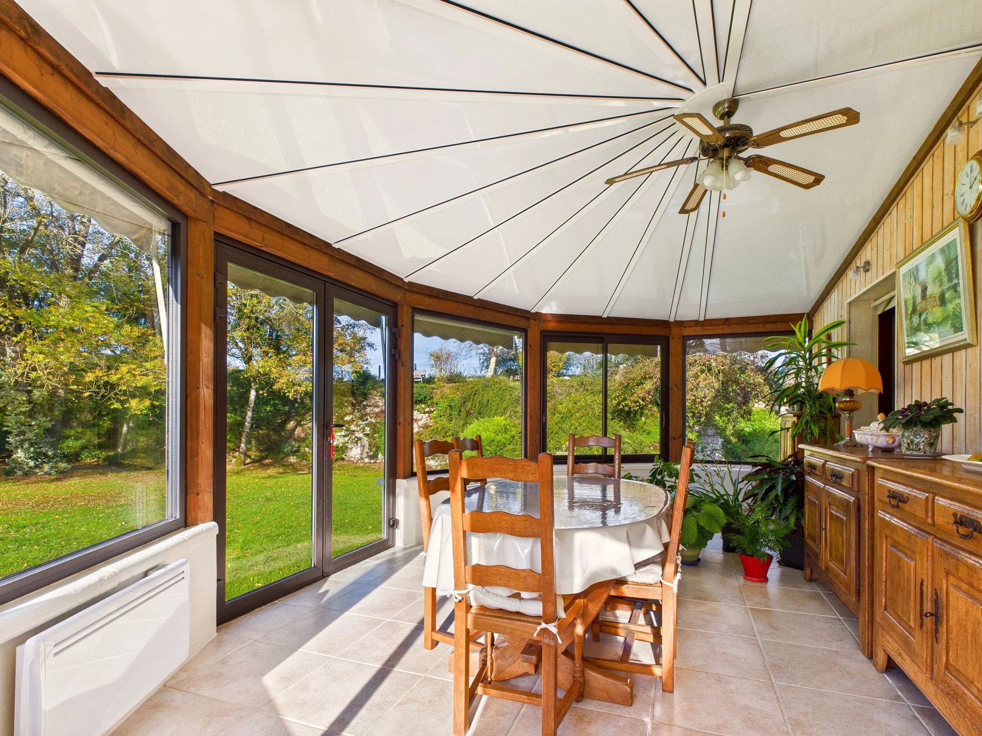The property offers a large outdoor space with mature trees and plants, including a vegetable garden, ideal for enjoying the peace and quiet.