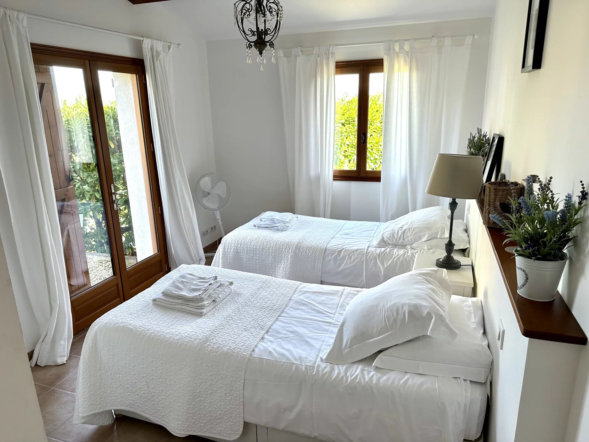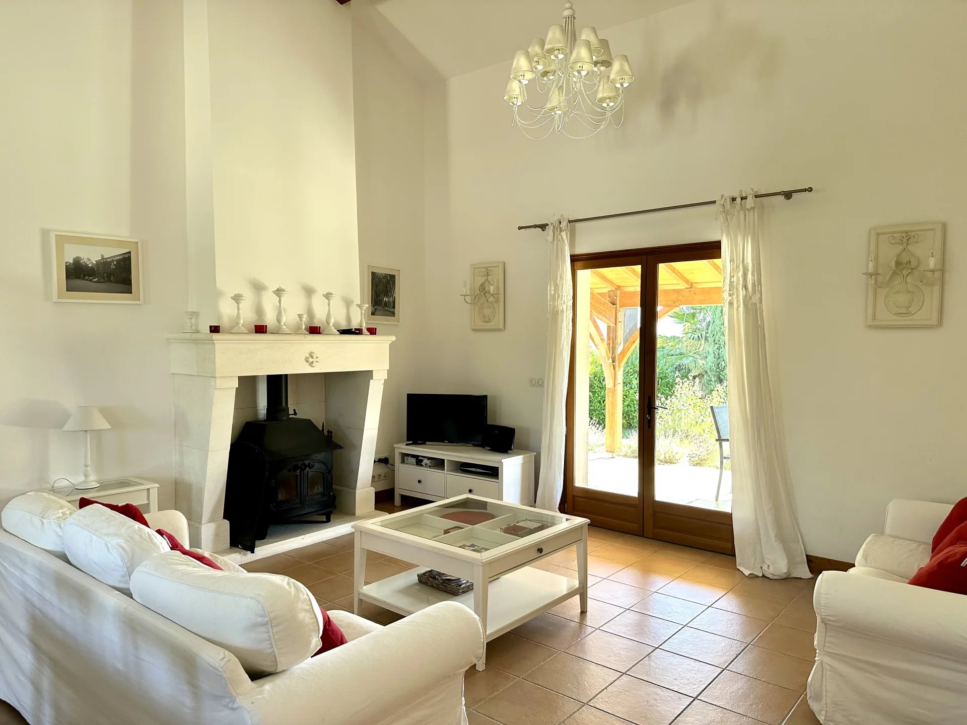 This superbly presented, high-quality property offers three bright and airy bedrooms. One features its own sitting area with en suite shower room/WC, while the other two share a spacious shower room/WC. The living area is open and full of light, with a central fireplace and wood burner, and flows into a generously sized kitchen. Large windows open onto a pleasant terrace and a landscaped garden of just over 800m² with a swimming pool and beautiful views over the surrounding countryside. All this is just a short walk from a popular 9-hole golf course.