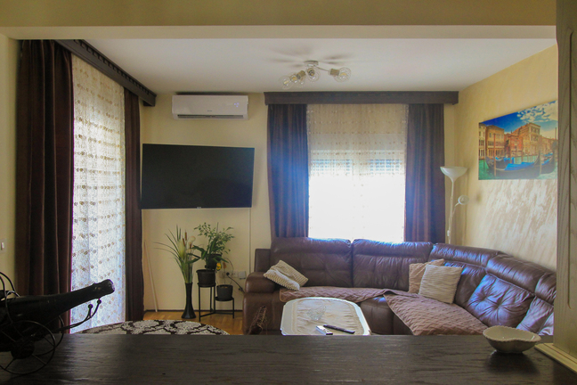 Layout of the apartment: living room combined with kitchen and dining room, three bedrooms, bathroom, toilet and large terrace. The apartment is very spacious and ideally designed. The apartment is fully furnished and equipped and is sold with all the furniture. From the living room it is possible to go out to the balcony with a view of the street.