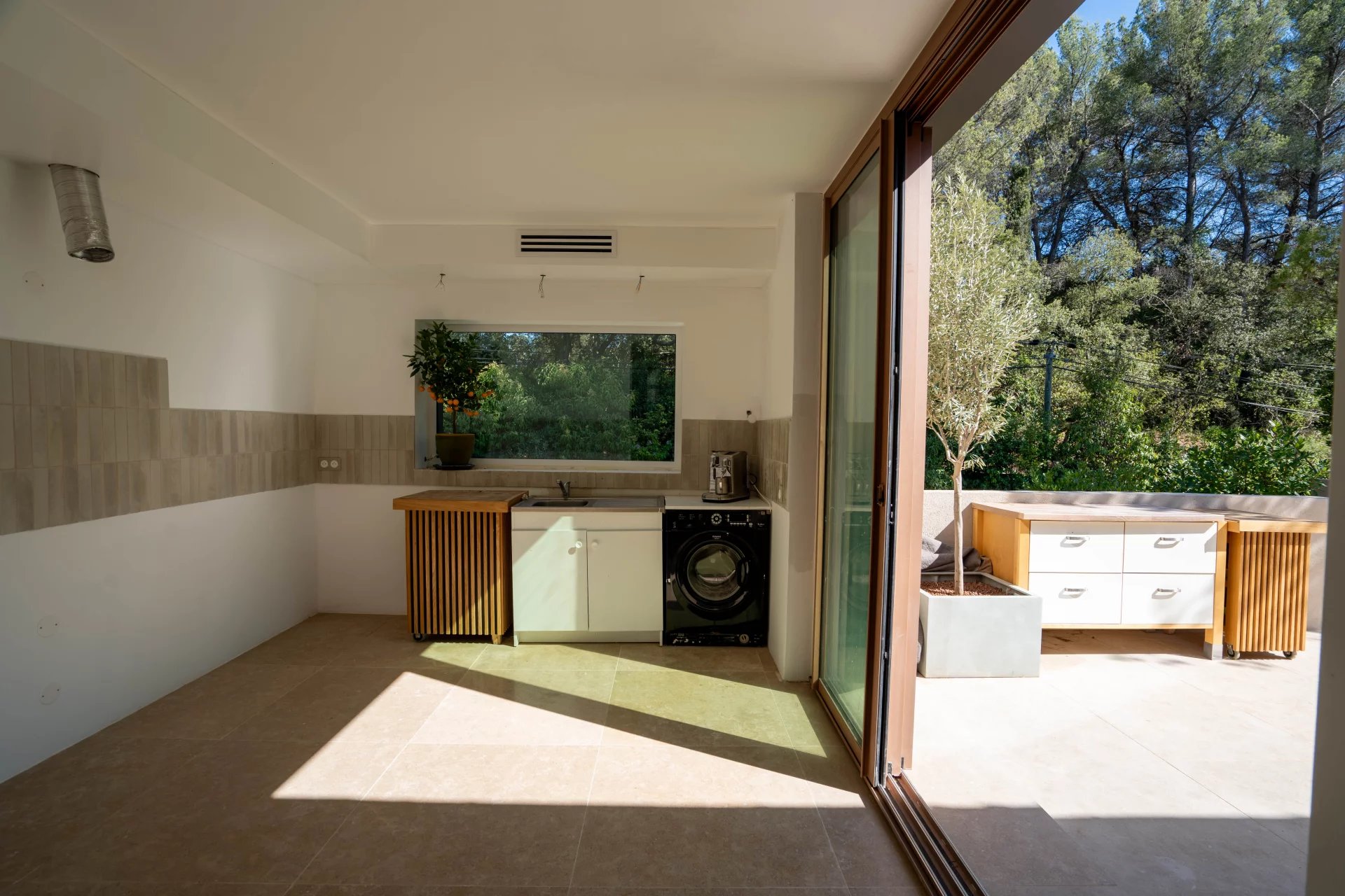 Surrounded by prestigious estates and historic castles, testaments to 17th-century bourgeois holiday living, this 148 m² home enjoys a rare and privileged location, nestled in a natural setting among vineyards, olive groves, and pine trees. It offers a peaceful, discreet, and authentically Provençal lifestyle, just minutes away from the conveniences of downtown Aix-en-Provence.