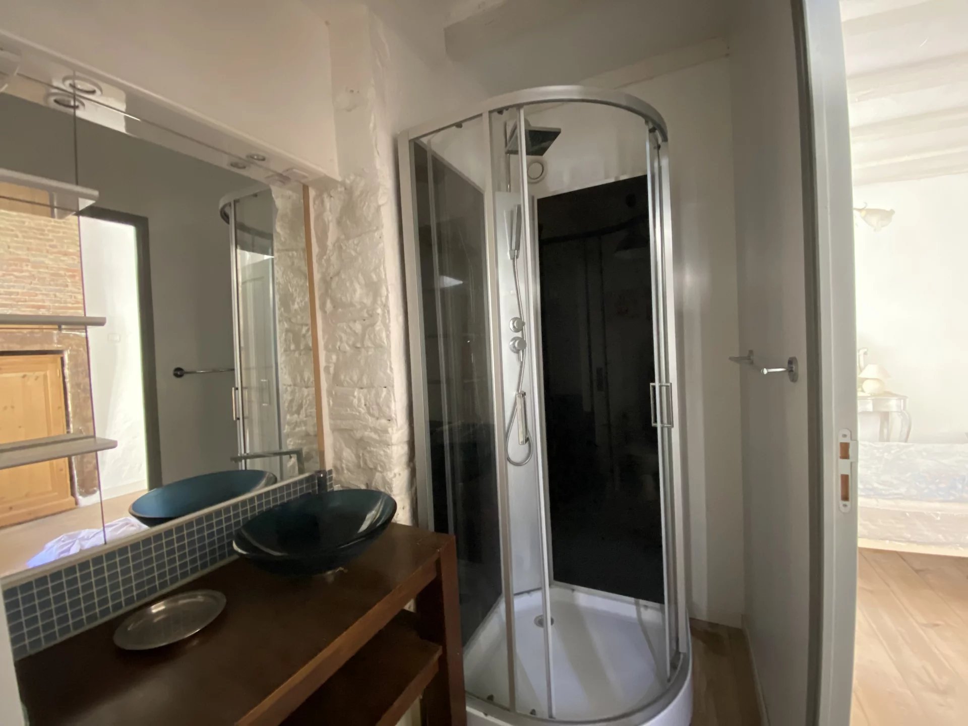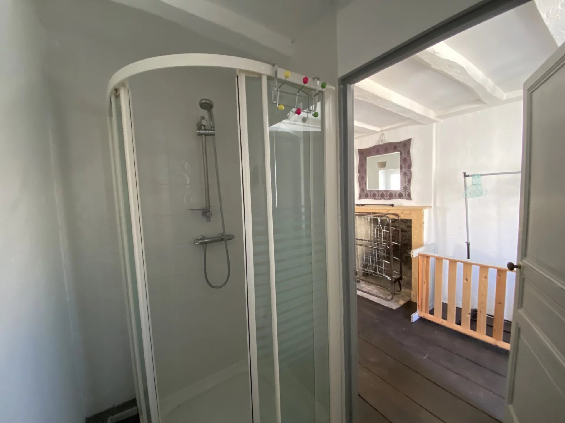 On the first floor, there is a bedroom with its own shower room.