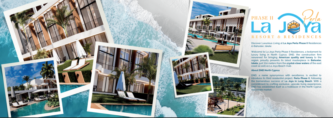 Welcome to La Joya Perla Phase II Residences, a testament to luxury living in North Cyprus. DND, the construction firm renowned for bringing American quality and luxury to the region, proudly presents its latest masterpiece in Bahceler, Iskele, just 700 meters from the crystal-clear waters of the east coast as well as La Joya Beach Club.