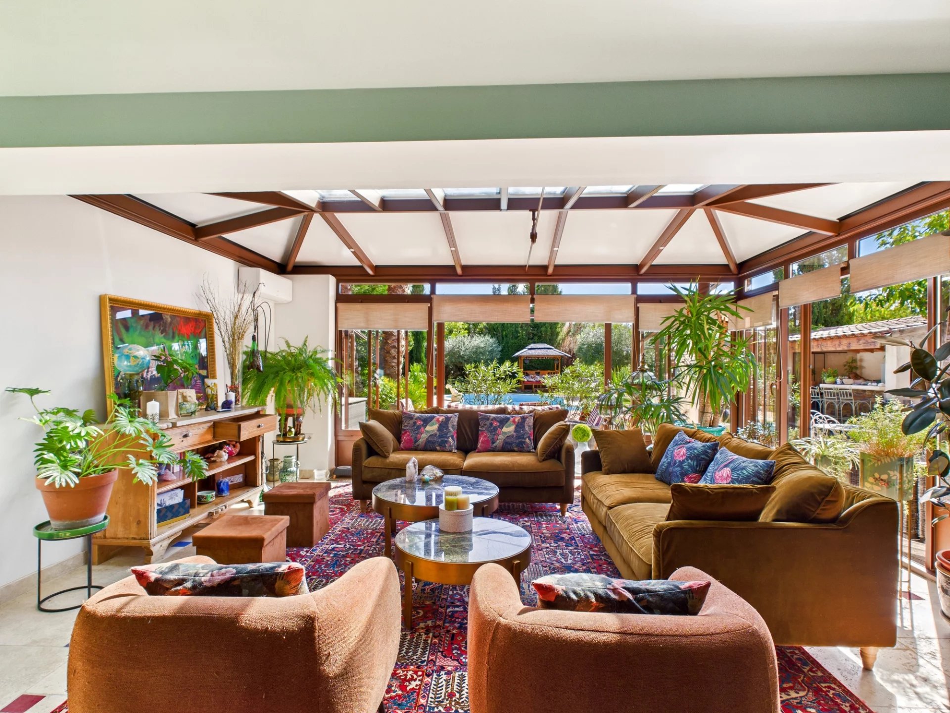 The exterior of the villa is equally impressive, with a beautiful 8x4m saltwater swimming pool and two terraces shaded by electric awnings. A superb summer kitchen and outdoor dining area overlook the grounds, with fruit and olive trees. Access to the property is secured by an electric gate, combining security and ease of access. This villa is a true haven of peace where comfort and elegance meet.