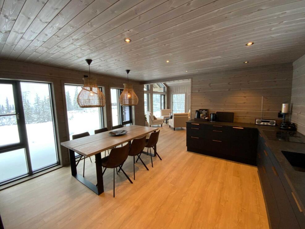 At 152.7 m², the Skogstjerne II offers space, elegance, and flexibility. This four-bedroom, two-bathroom cabin includes a sauna and extra toilet, soaring ceilings, and a sunlit open-plan living area with panoramic windows. An upstairs lounge and sleeping loft provide additional space for guests or relaxation. Crafted from solid Norwegian timber and finished with natural materials, the Skogstjerne II is a warm, welcoming haven for year-round mountain living.