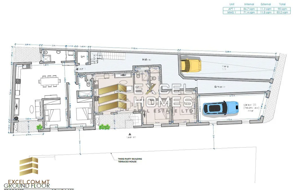 Apartment 01 – 2 Bed, 2 Bath – 98sqm – 170,000