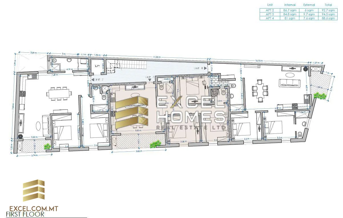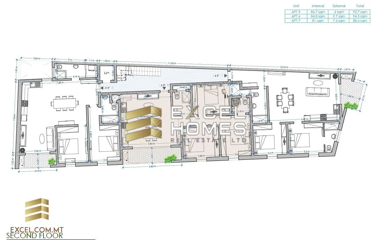 Apartment 05 – 2 Bed, 2 Bath – 92.7sqm – 172,000