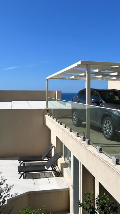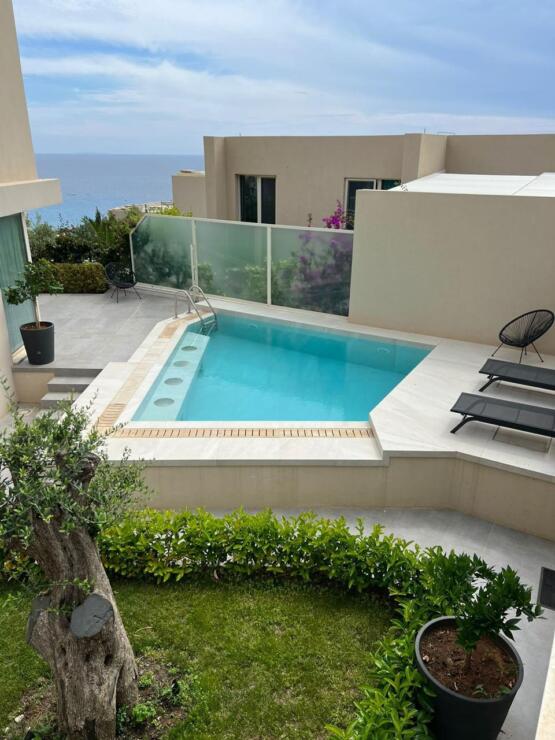 The villa has a special floor plan that combines different building levels, designed by an architect, with breathtaking views of the Ionian coast.