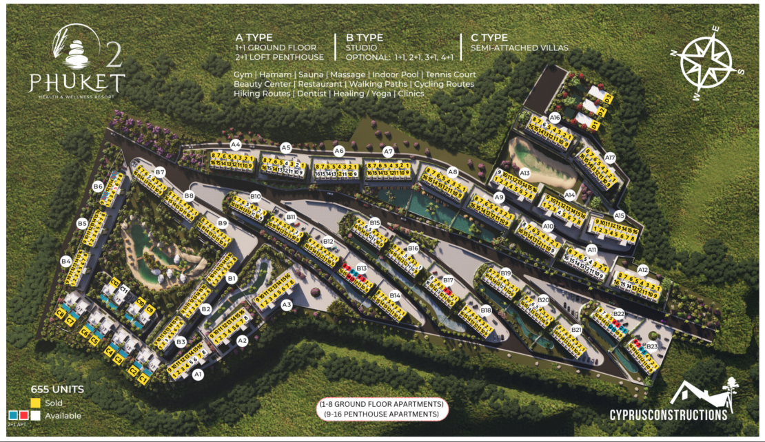 The project consists of 655 residential units. 368 Studio Apartments, 136 – 1 +1 Apartments, 136 -3 + 1 Apartments, 12 semi-detached Villas and 3 detached Villas. It also takes advantage of the onsite medical clinics and cycling routes are also there for those seeking a piece of mind in this natural environment. What else can the body and mind ask for?