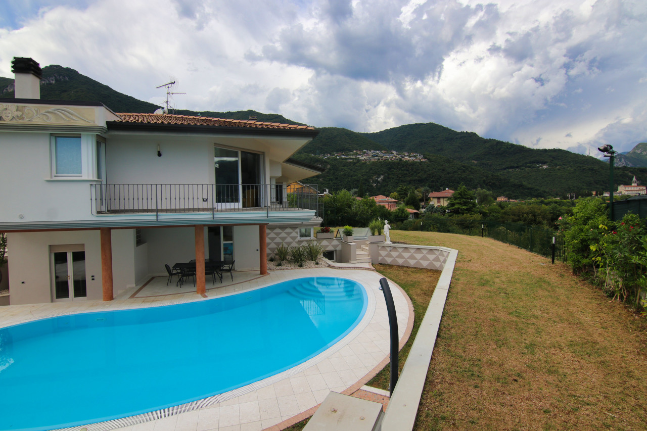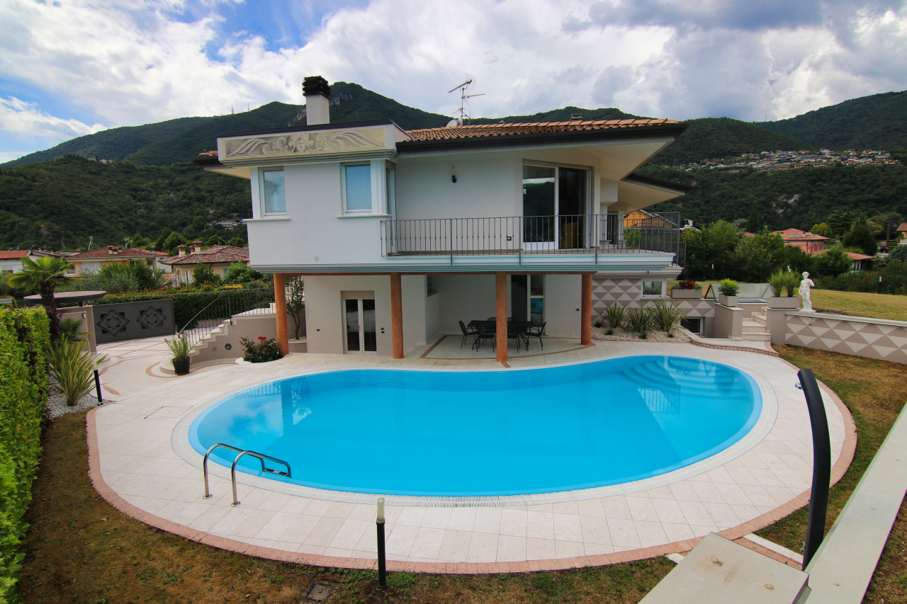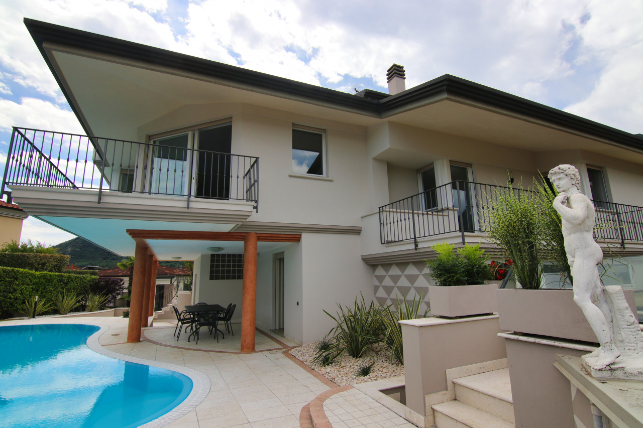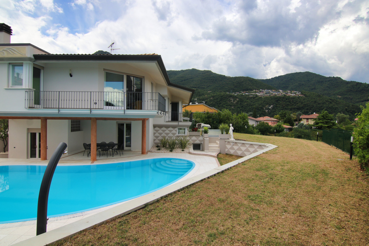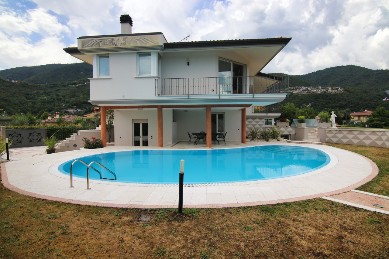 Just minutes from Salò and the shores of Lake Garda, in a private yet easily accessible location, we offer for rent a splendid villa nestled in the green hills of Roè Volciano, with enchanting views of the surrounding landscape that disappears into the blue of the lake.