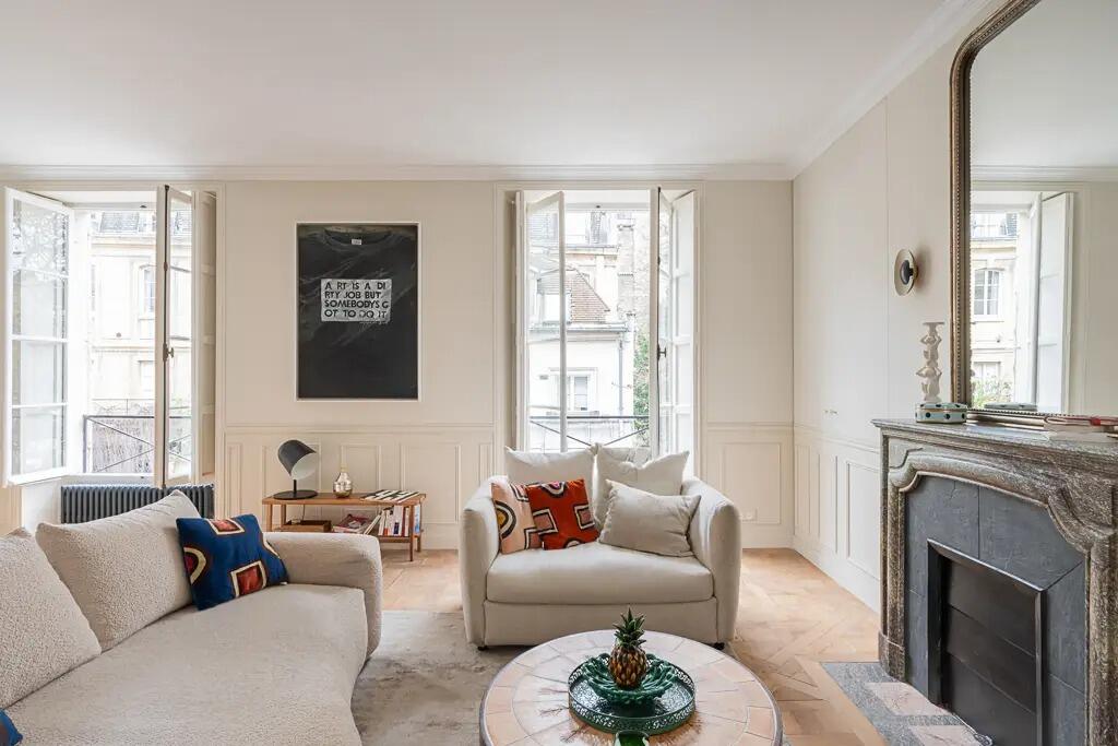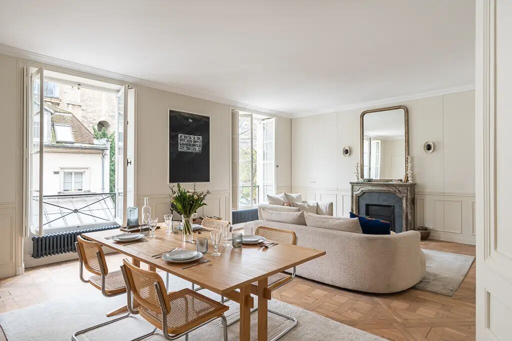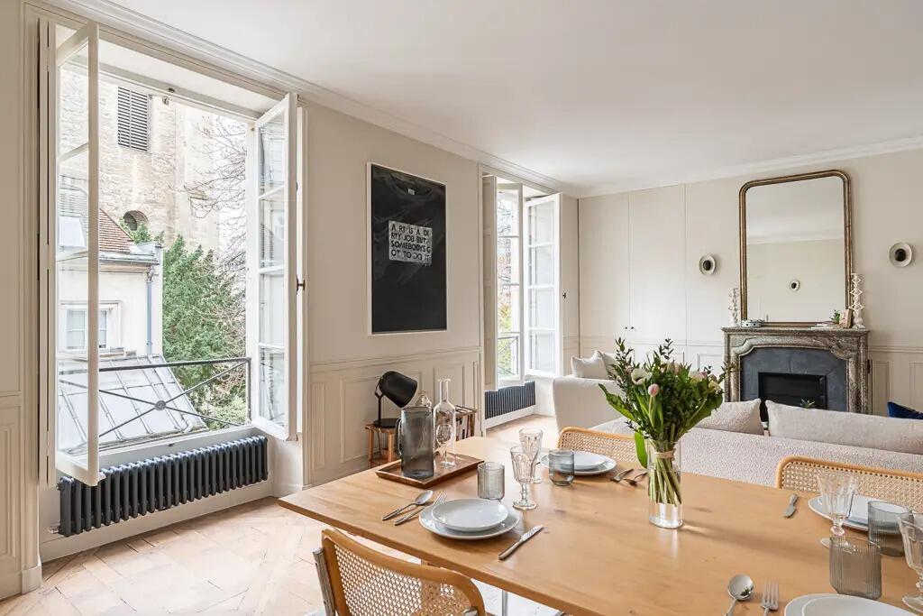 This exceptional apartment offers an unparalleled view of the historic Abbey. Situated on the second floor of a distinguished 1800s building, this lavishly renovated residence perfectly balances contemporary luxury with classical Parisian charm.