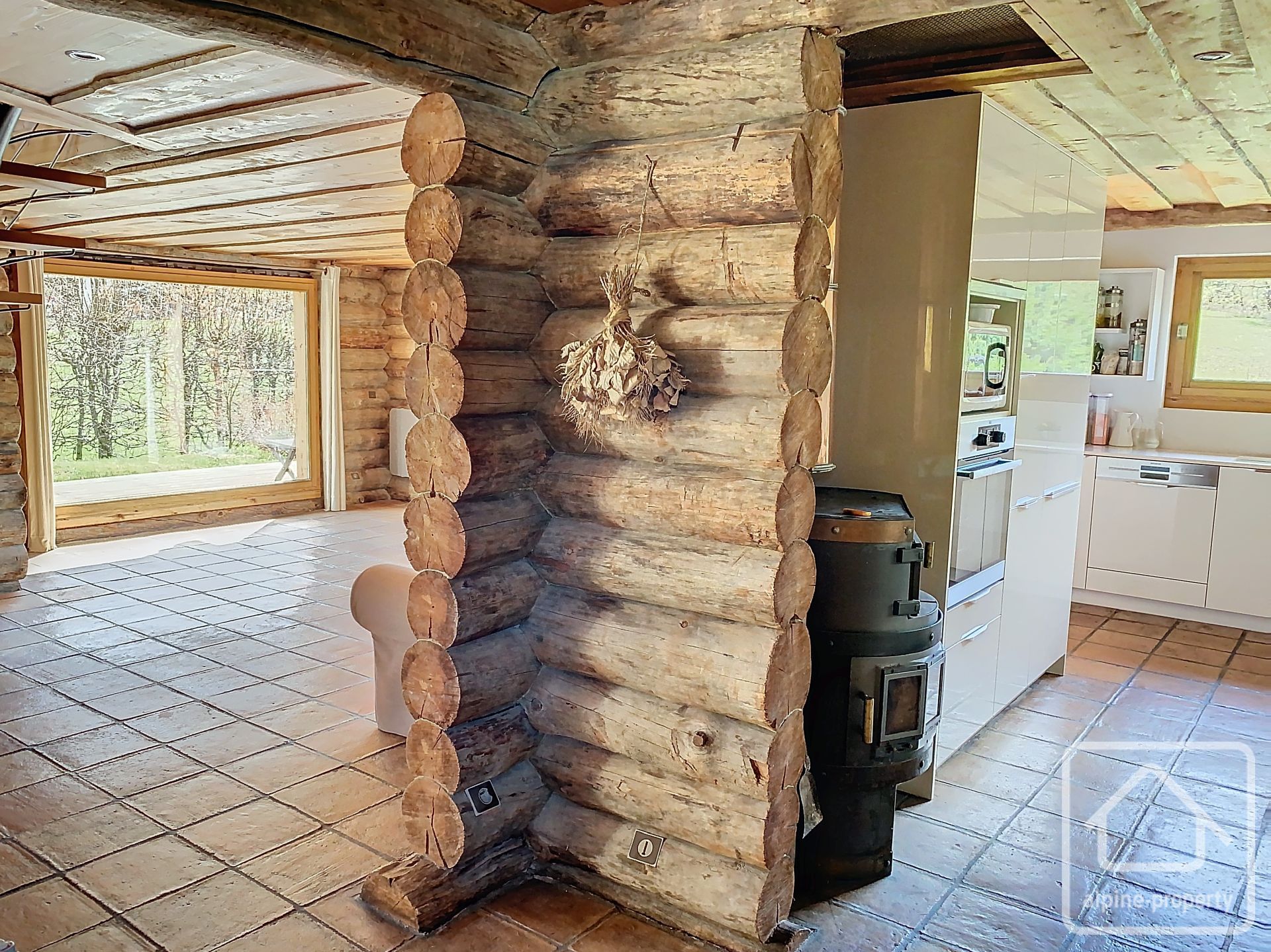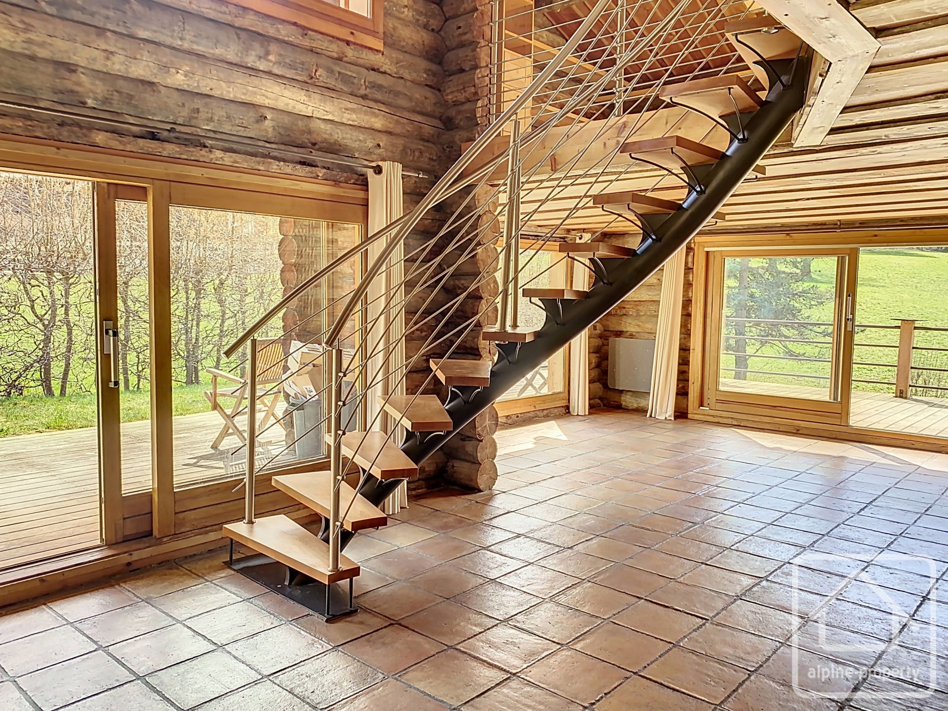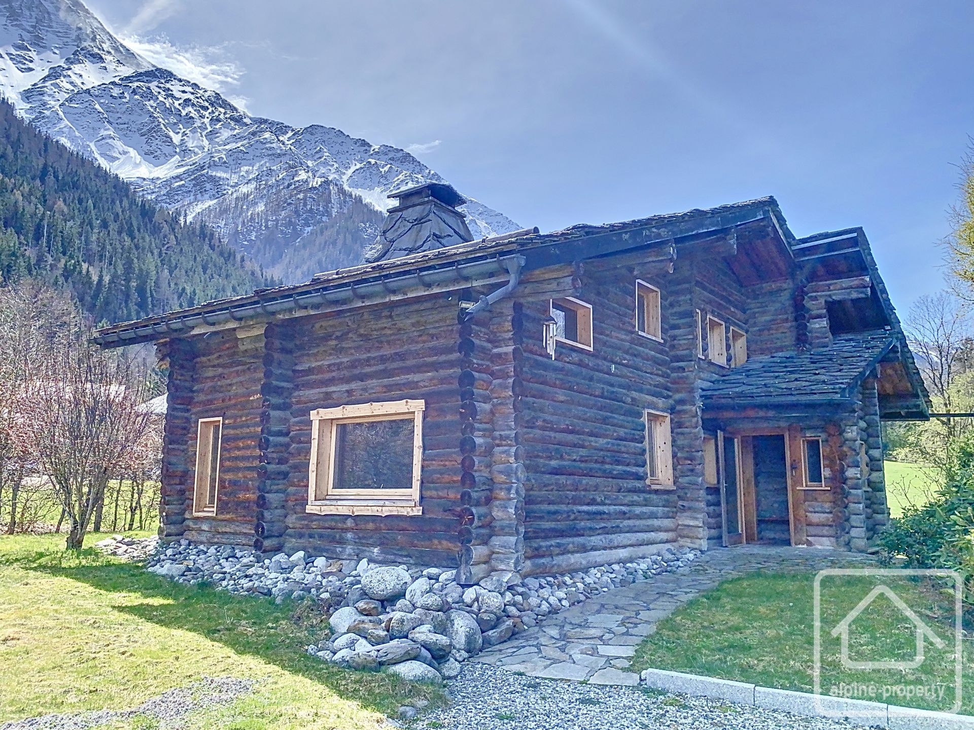 Nestled in a peaceful, private setting with no overlooking neighbours, this charming 220 m² log chalet offers stunning panoramic views of Mont Blanc and the surrounding peaks. Located on a beautifully maintained plot of 737 m², the property combines traditional alpine character with spacious, functional living; ideal as a family home or a mountain retreat.
