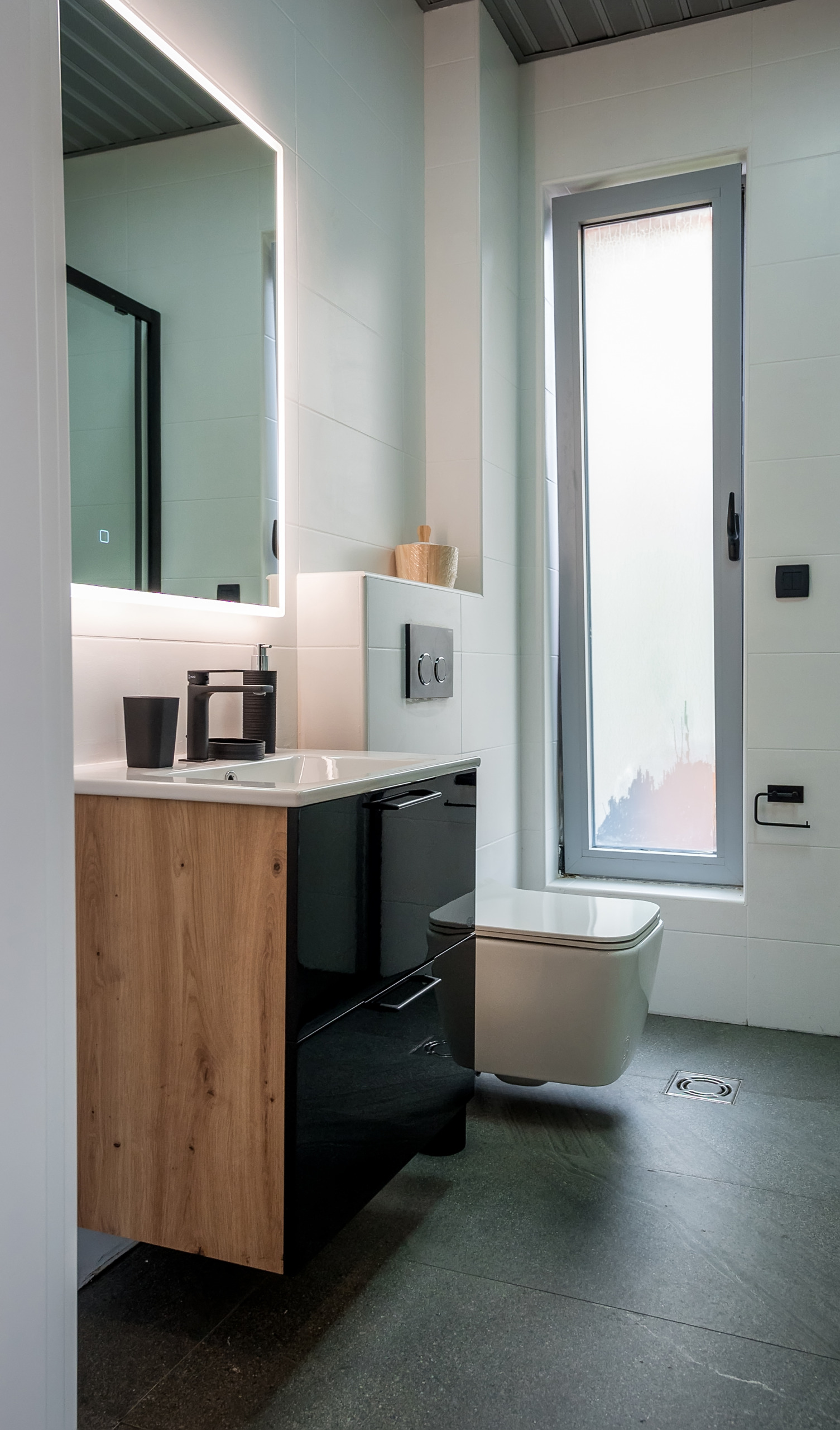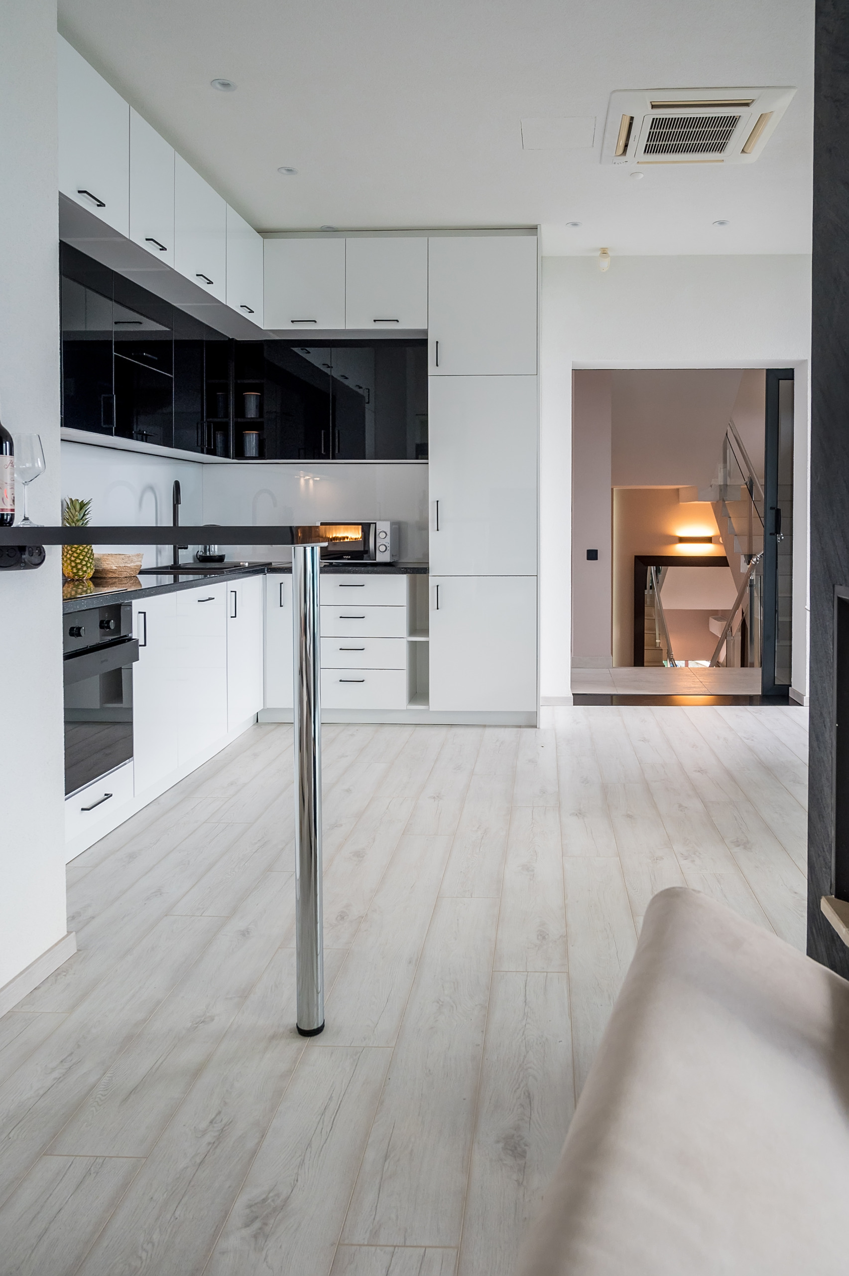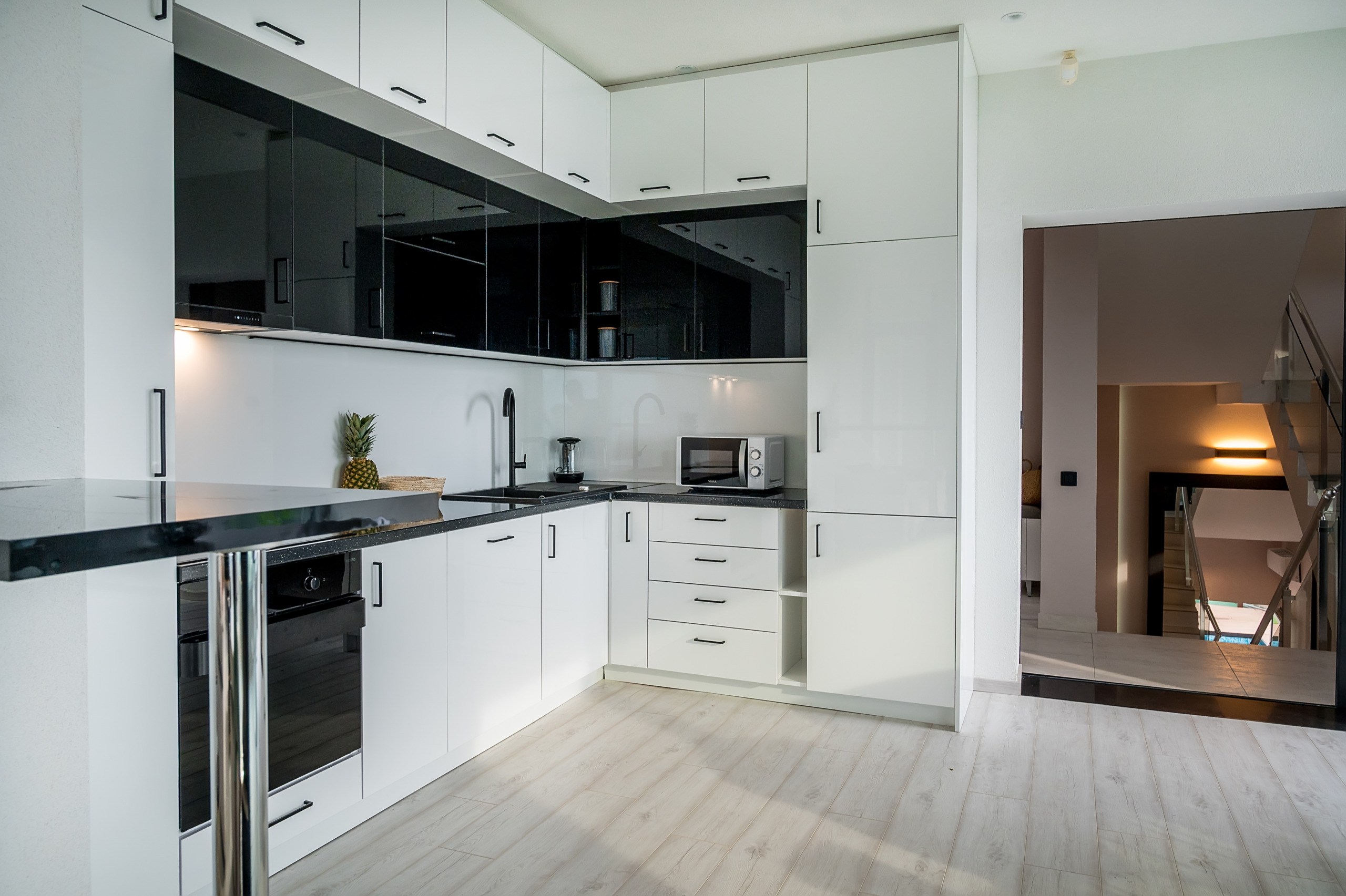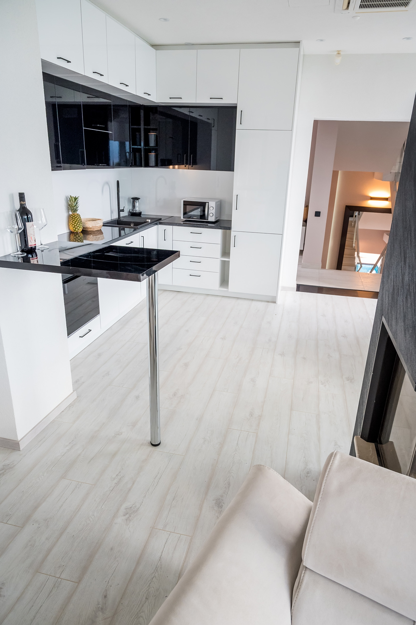 - Living Area: Open-plan living room and kitchen with modern finishes.