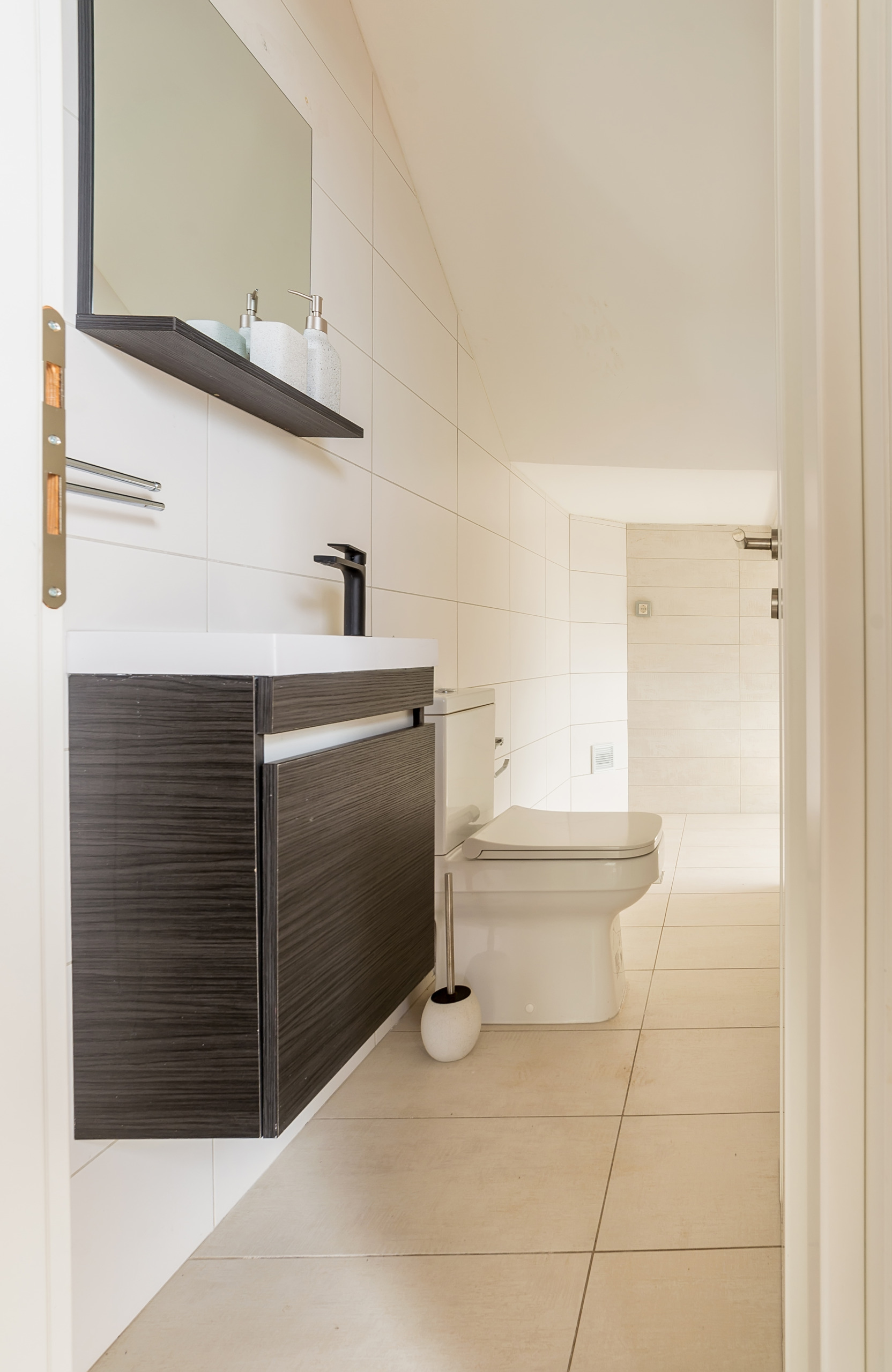 - Two bedrooms, a bathroom, and a toilet on the opposite side, with access to the garden.