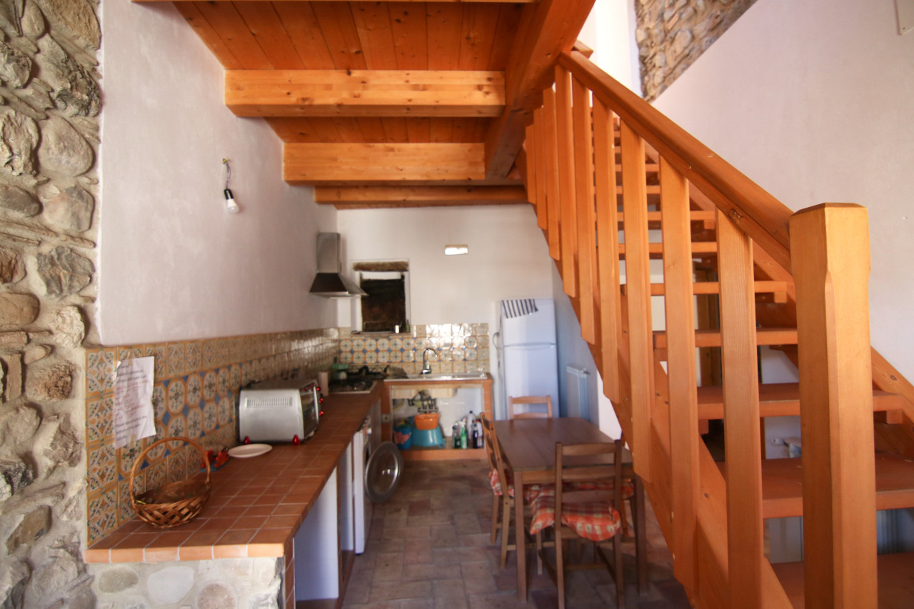 Within a worn stone staircase, each step tells stories of those who climbed it before me. When I get up, I’m in a built-in kitchen that tastes like tomatoes in the sun and wood in the oven. There’s a niche in the wall, closed by a wooden door: I’m sure it’s hiding treasure…maybe ancient letters, maybe forgotten candy, as soon as I walk back I need to check it but now I need to hide…oooh where I go…over there in the living room. Above all exposed beams and a large stone fireplace that looks like the portal to an underground world. From the French window you exit onto a tiny balcony but full of sky. From there I see the roofs with tiles and the profile of the mountains in the distance. Strong breath: smells of resin and adventure.