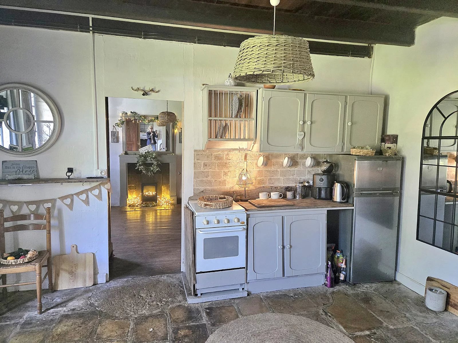 To the rear of this house is another house to renovate with three large rooms, beautiful flagstone floors, exposed stone and a fireplace.