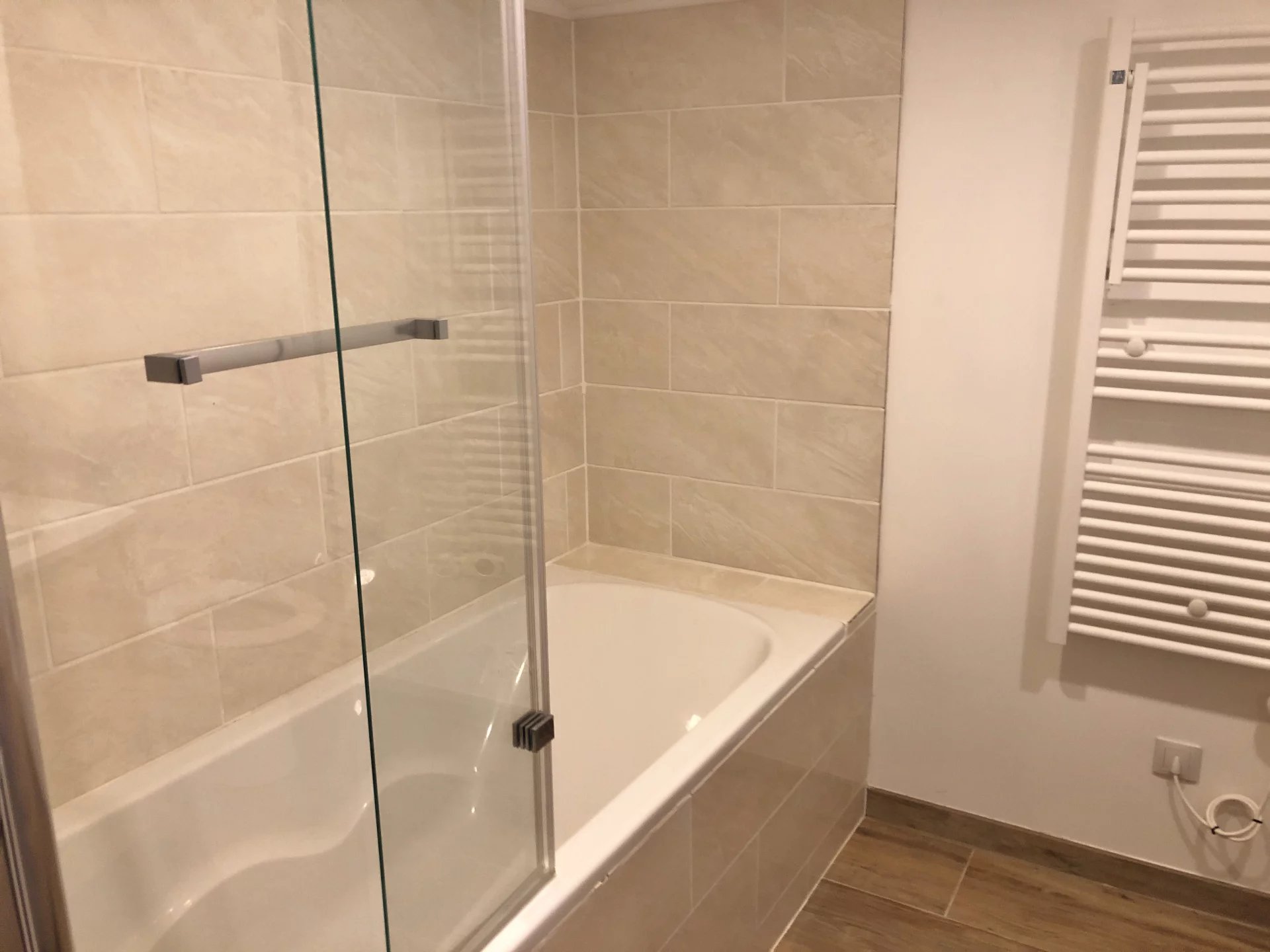 This property has a garage with access to the side with an electric door as well as the front door. So as you come in the front door, you come into the garage. Then up the stairs to the open plan living / kitchen. All newly renovated. On the top floor you have a bedroom and a bathroom with bath, shower overhead, wc and basin.