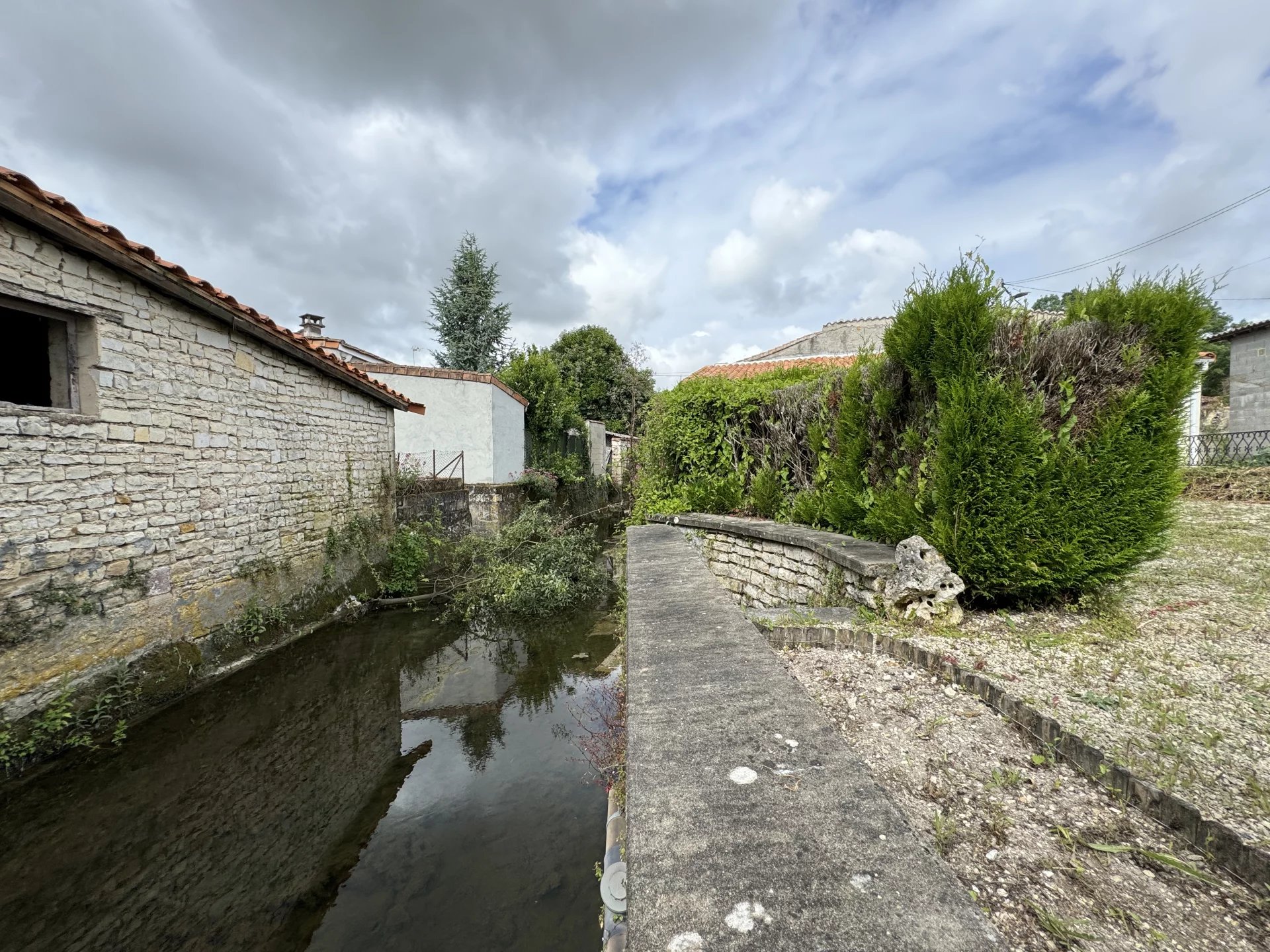 This village property is located next to a stream within walking distance of the village of Aigre, which offers shops, restaurants and a bakery.