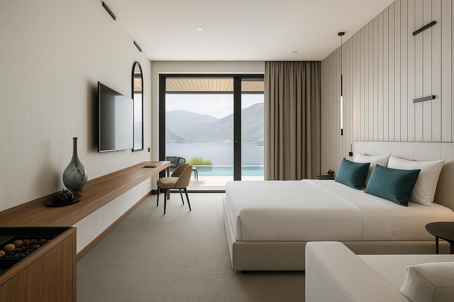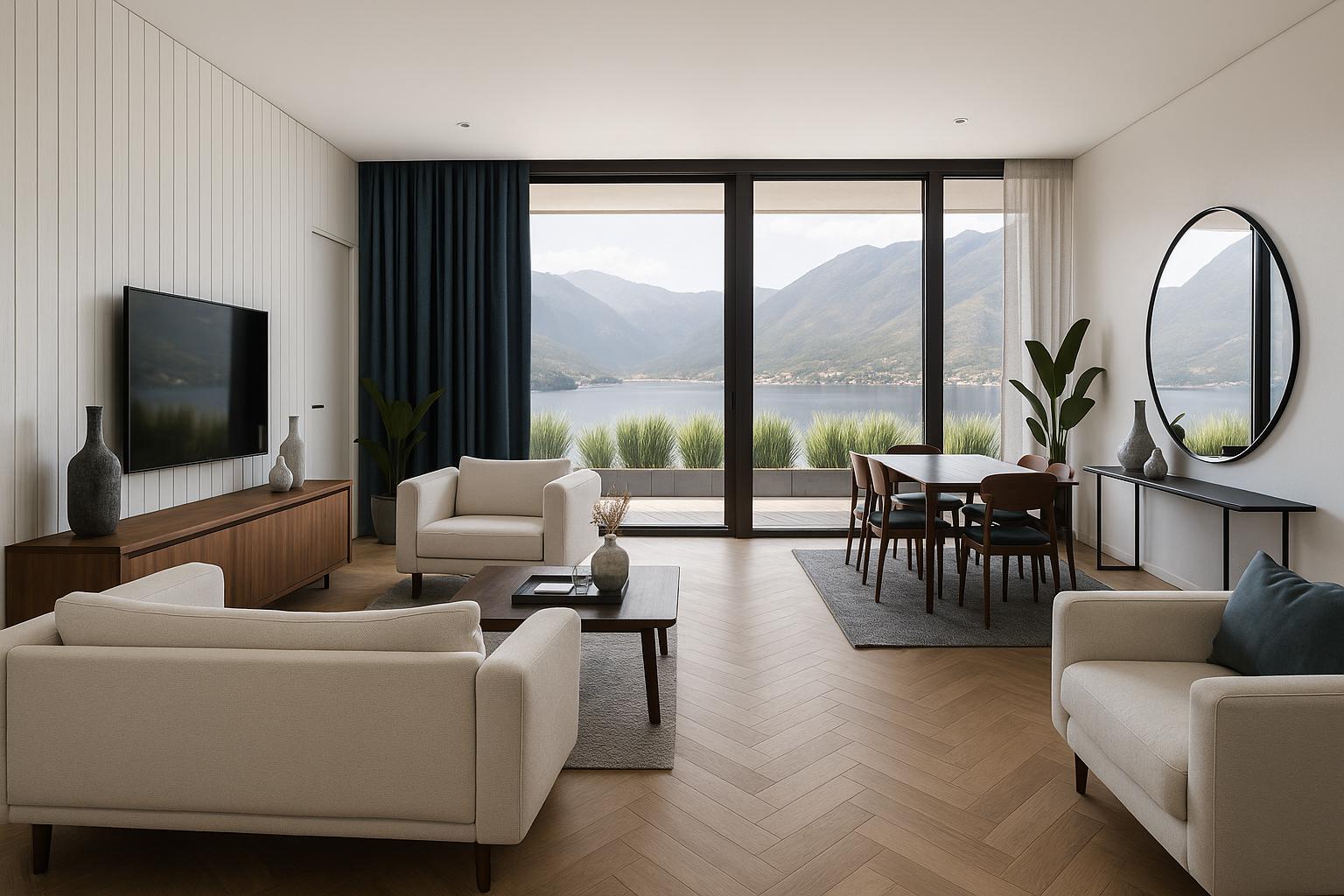 Porto Montenegro, a globally recognized superyacht marina and luxury hub, is just a 7–9 minute boat ride away, while Tivat Airport is only a 7-minute drive, offering unbeatable accessibility for international investors and future guests or residents.